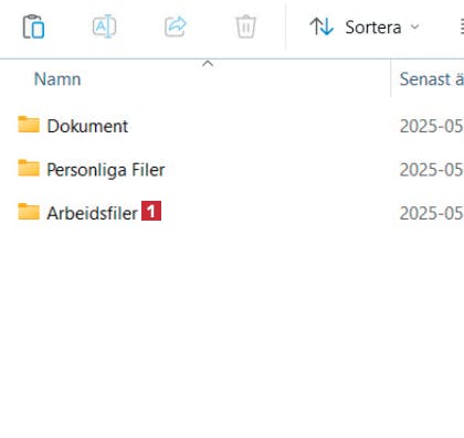 Du kan nu utforska de olika mapparna på din dator. Vid varje mapp står det vad mappen heter och hur många gigabyte den upptar.