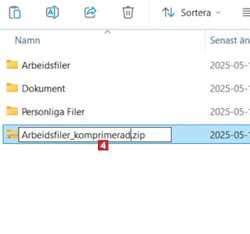 Ge filen ett namn, till exempel namnet på den ursprungliga mappen, och lägg gärna till texten komprimerad 4 i slutet så att den blir lätt att hitta igen.