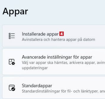 I Windows 11 ska du klicka på Installerade appar 4, medan det i Windows 10 heter Appar och funktioner.