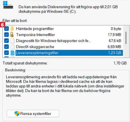 Markera alla typer av filer som du vill radera 6. Vi rekommenderar att du markerar alla kategorier för att få mest möjligt utrymme.
