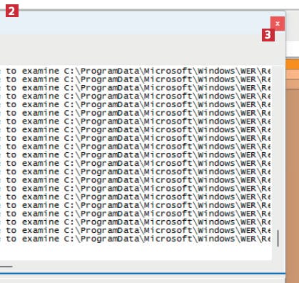 När programmet har undersökt hårddisken kan du stänga fönstret 2 genom att klicka på krysset 3 i hörnet.