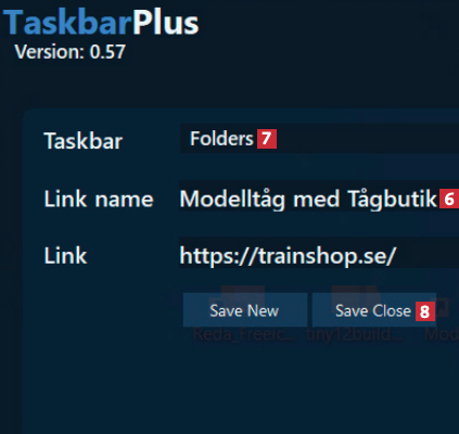 Nu kan du ändra genvägens namn 6 och i vilken grupp 7 av genvägar den ska placeras i. Klicka sedan på Save Close 8.