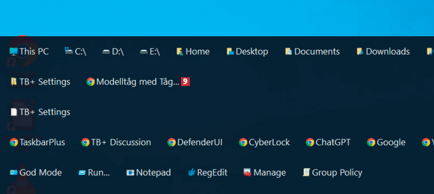 När du har skapat dina genvägar i Windows kan du organisera dem snyggt med programmet TaskbarPlus. Med det får du en panel längst ned på skärmen med dina genvägar.