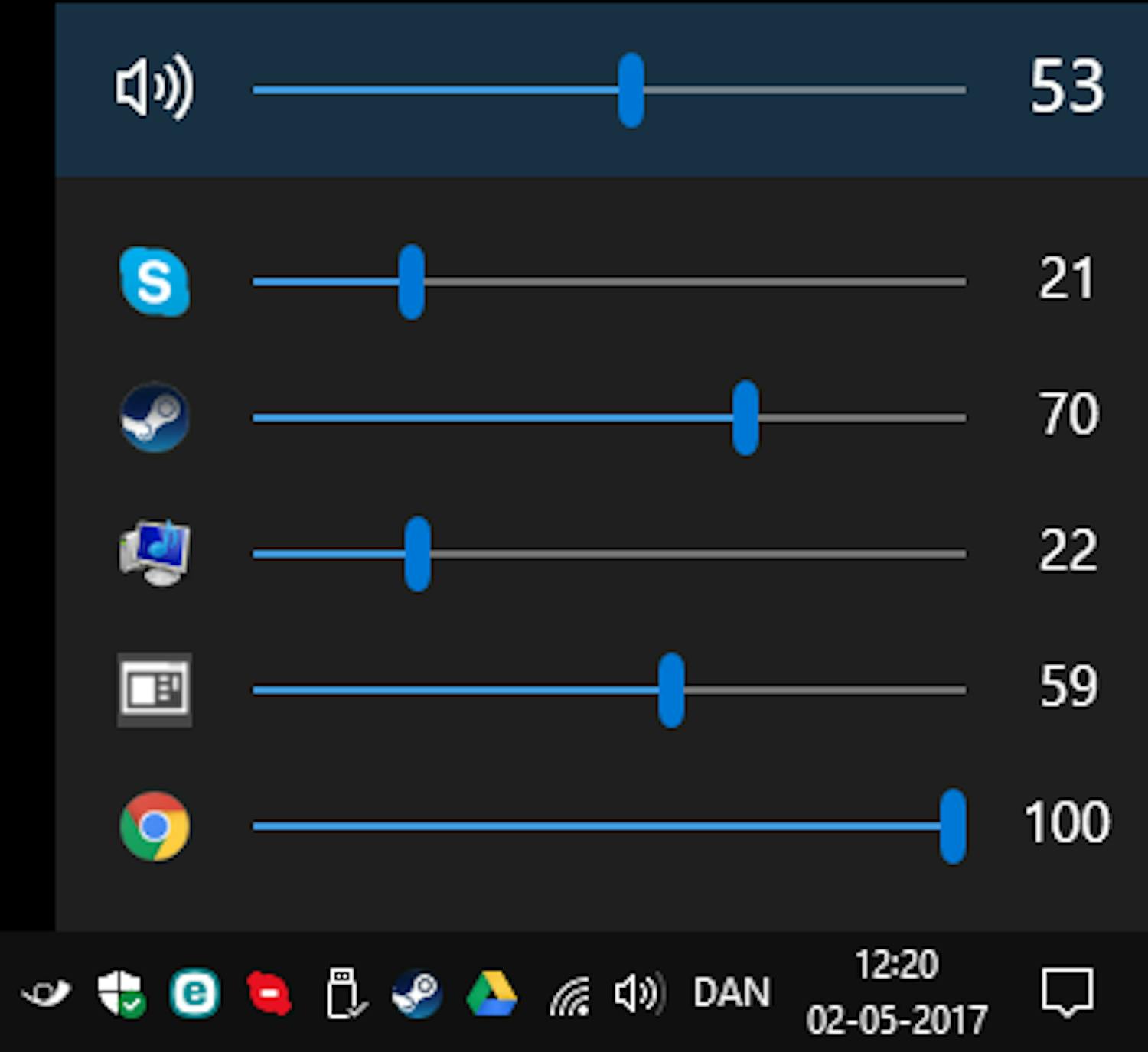 I bilden ovan har vi dragit ned ljudet en aning i Skype och dragit upp det i Chrome. På så sätt slipper vi ändra ljudvolymen varje gång vi tittar på YouTube eller ser andra klipp på internet.