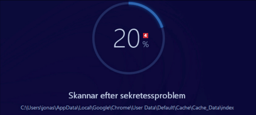 Programmet börjar med den första uppgiften, som är att ta bort privat information från datorn. Du kan hålla koll på hur långt det har kommit i det övergripande arbetet 4.