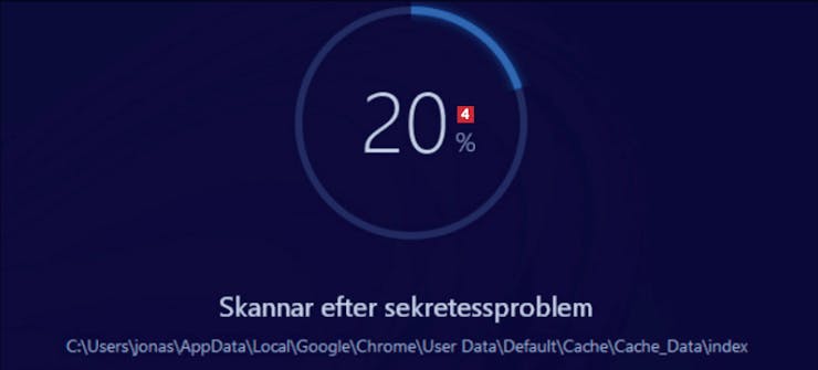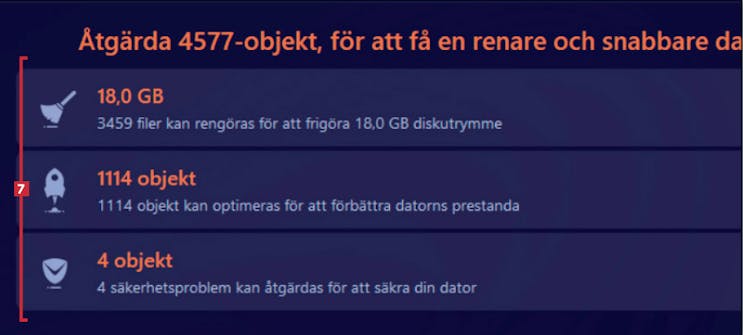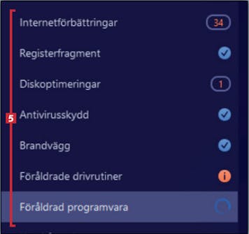 Till vänster i fönstret 5 kan du se hur många problem programmet hittar i de olika kategorierna. Det kan ta upp till tio minuter.