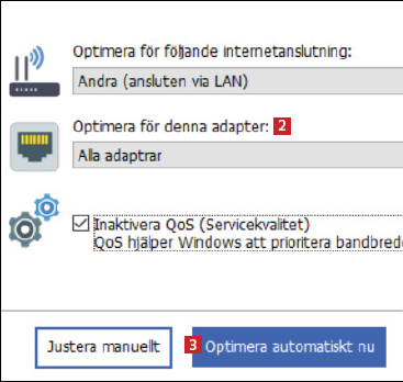 WinOptimizer 2020 har en speciell funktion som kan optimera datorns internetanslutning. Det görs bland annat genom att verktyget förbättrar den paketstorlek som all data skickas i när du kommunicerar med internet. Följ