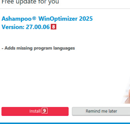 Om programmet säger att det finns en uppdatering tillgänglig för WinOptimizer 8 ska du klicka på knappen Install 9, så att du är säker på att ha de senaste funktionerna.