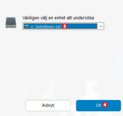 Välj den hårddisk som du vill undersöka närmare 3 och klicka på OK 4. Du behöver vanligtvis välja din C-enhet med Windows.