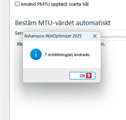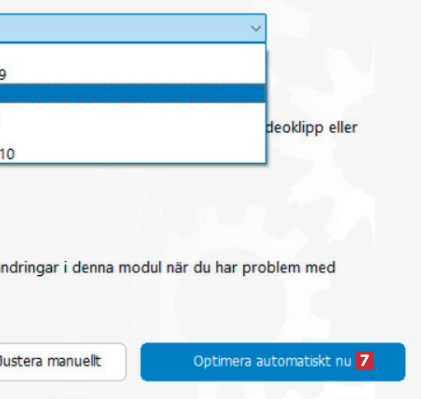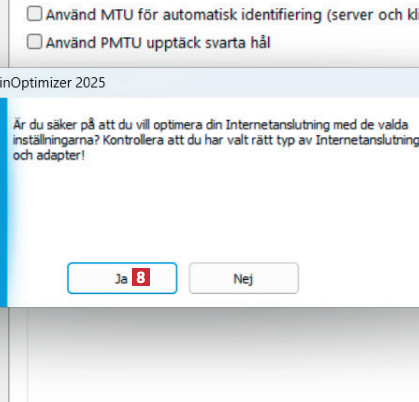 Klicka på knappen Optimera automatiskt nu 7 för att programmet ska välja optimala inställningar för din anslutning.