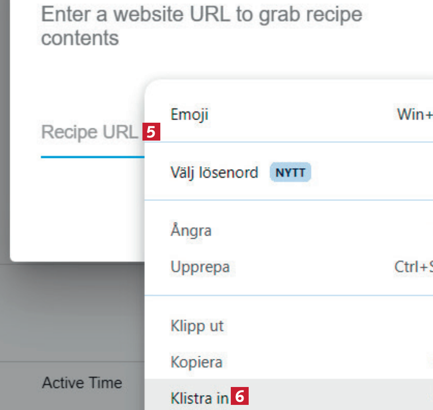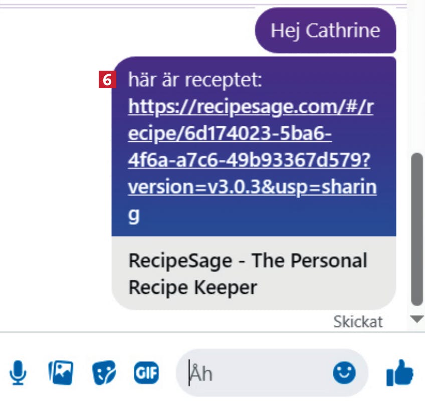 Du kan nu dela receptet var som helst, till exempel i en Facebookchatt 6, genom att trycka på Ctrl + V på tangentbordet.