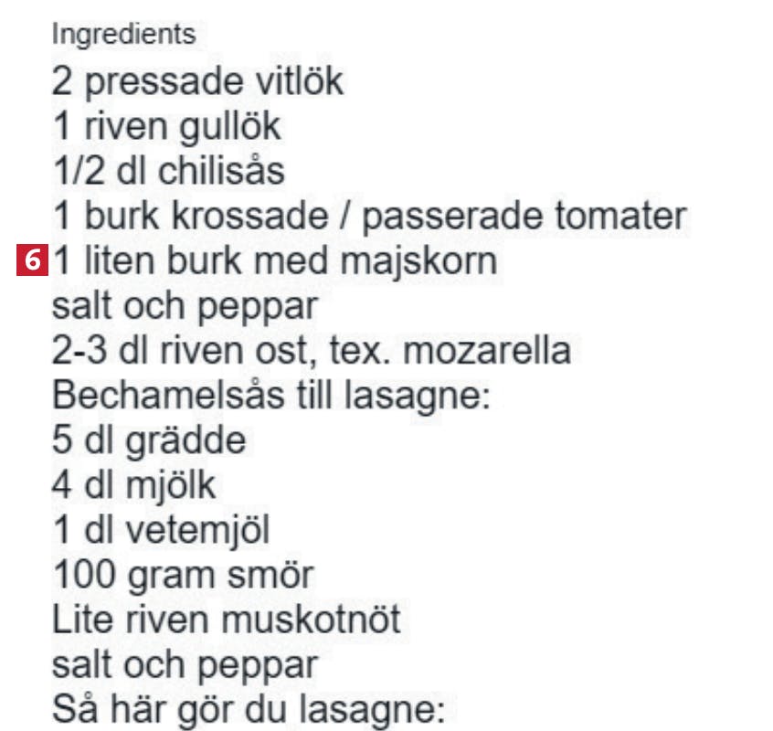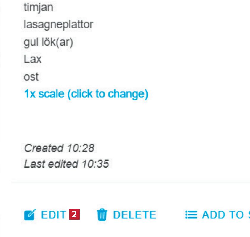 Du kan också ändra i själva receptet genom att klicka på den del av receptet, som ingredienslistan 6. som du vill redigera. Sedan är det bara att skriva in dina ändringar