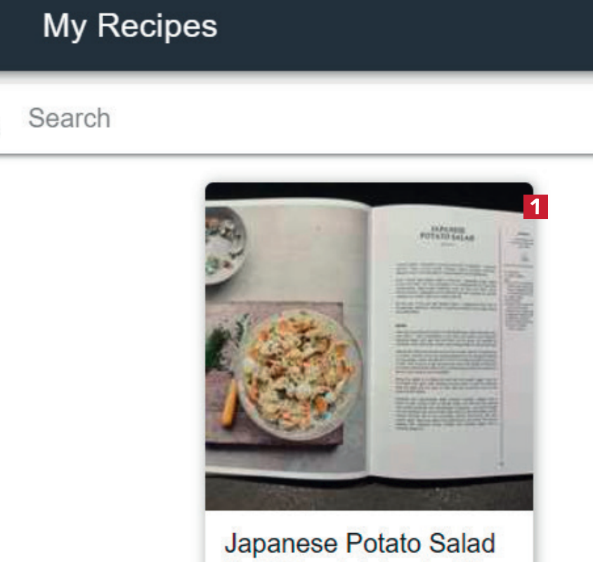 Se till att receptet har lagts till i RecipeSage på något av de sätt som vi har visat i de tidigare guiderna. I huvudmenyn klickar du på receptet 1 du vill anpassa.
