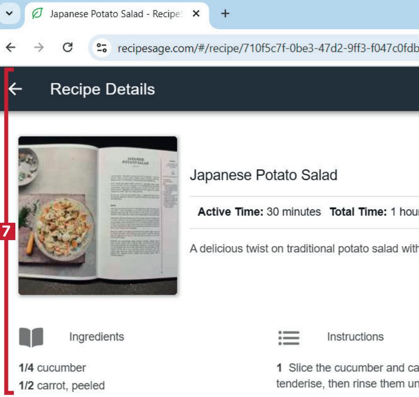 Har du ett foto av ett recept från en kokbok kan du lägga till det i RecipeSage, som vi visar här.