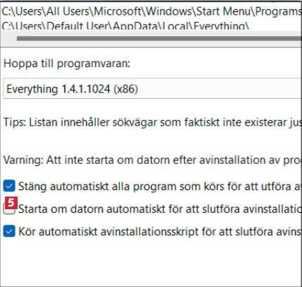 Ta bort markeringen vid Starta om datorn automatiskt för att slutföra avinstallationen 5, så att datorn inte stängs av om du arbetar med något annat på den.