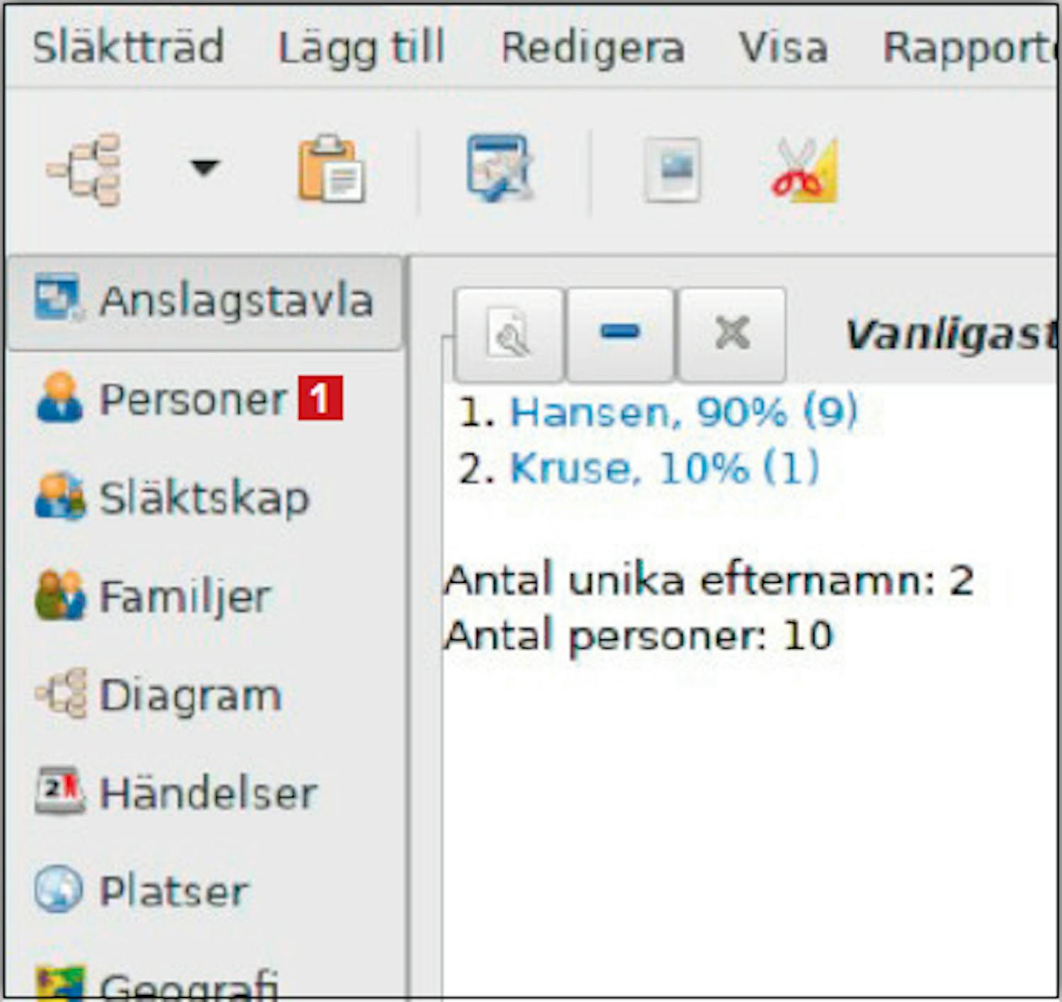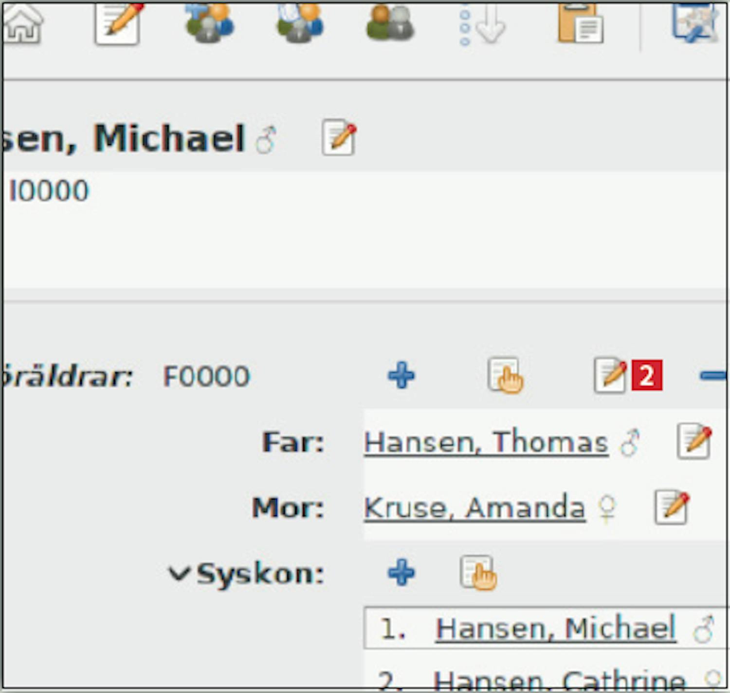 Du kan lägga till en persons föräldrar via släktträdet i programmet och automatiskt få ordning på släktförhållandet mellan barn och föräldrar.