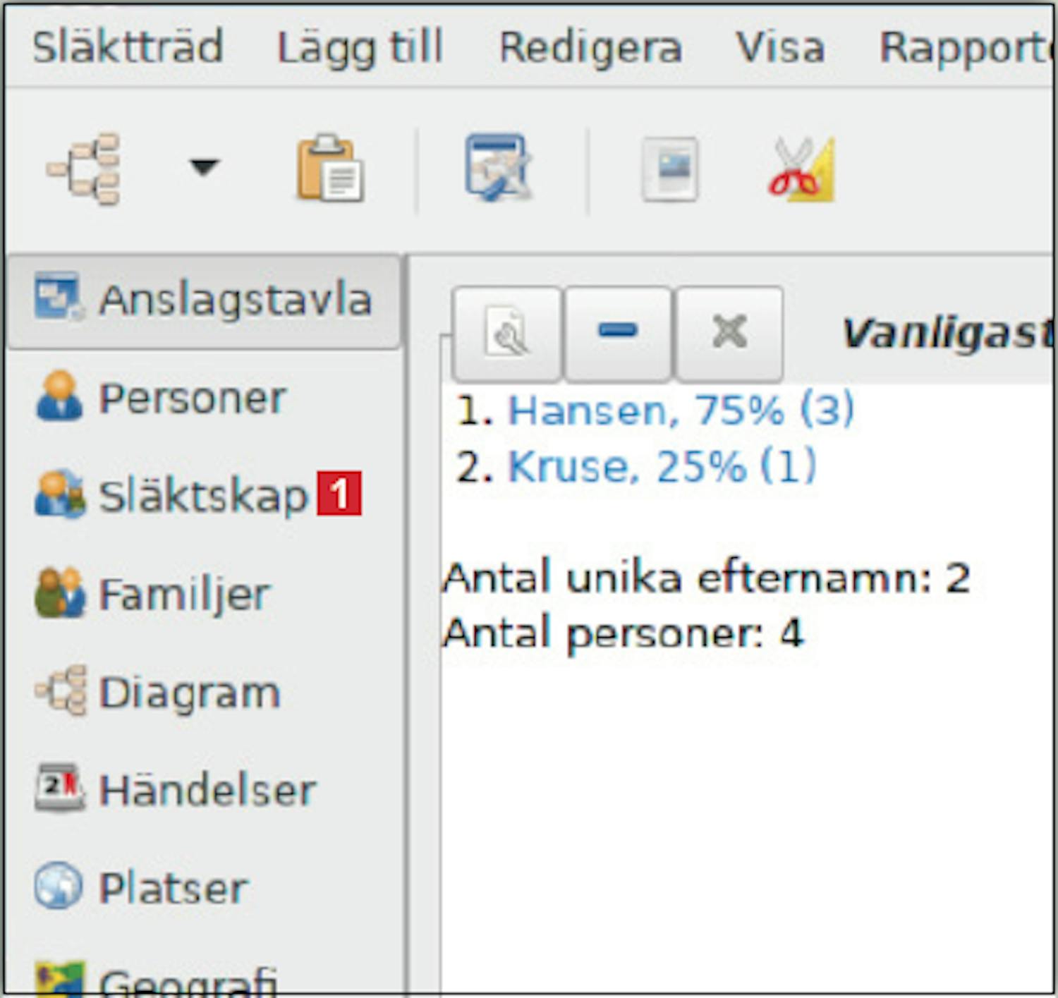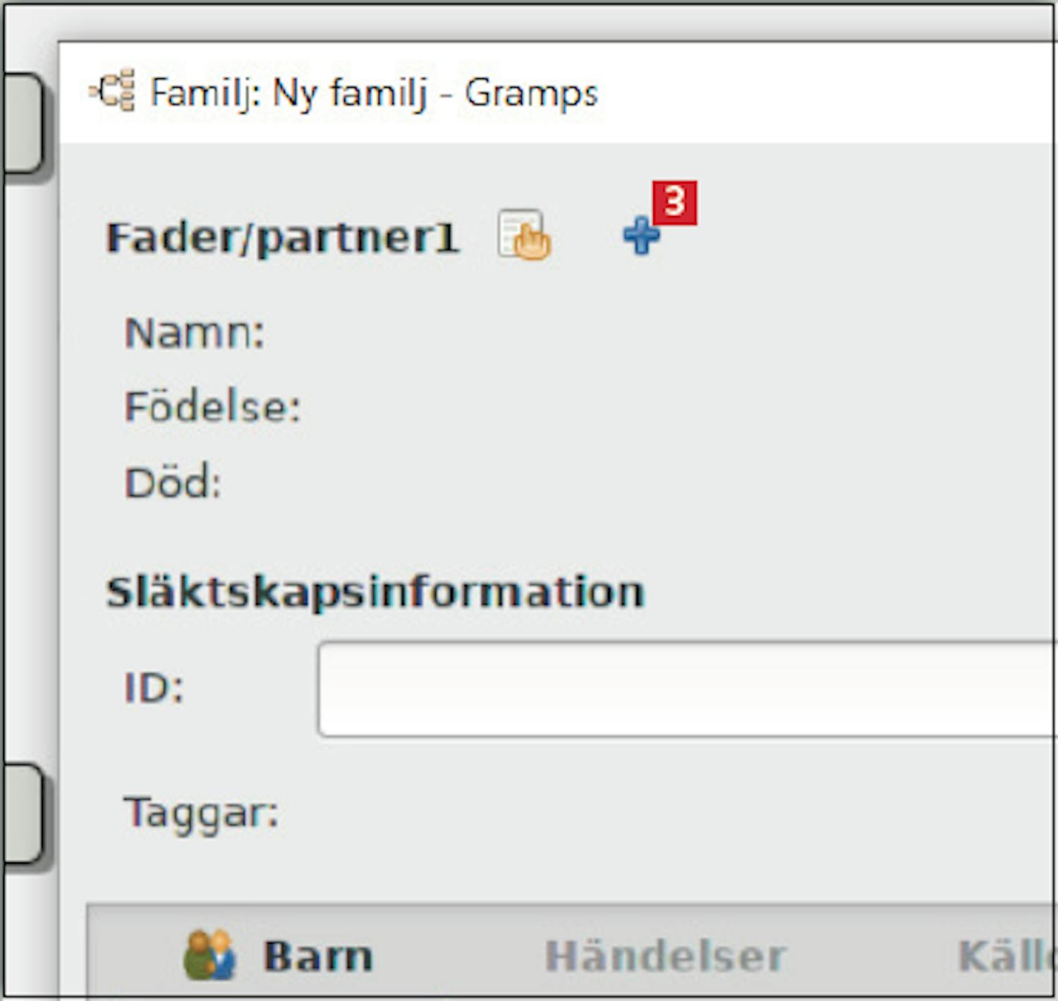 När du har hittat ny information om en släkting kan den läggas till i släktboken som skapats med programmet Gramps.