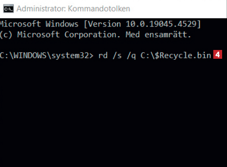 När jag klickar på ikonen för papperskorgen öppnas ett fönster, men jag kommer aldrig någonstans. Jag ser bara meddelandet ”Arbetar på det ...”. Hur kommer jag åt min papperskorg?