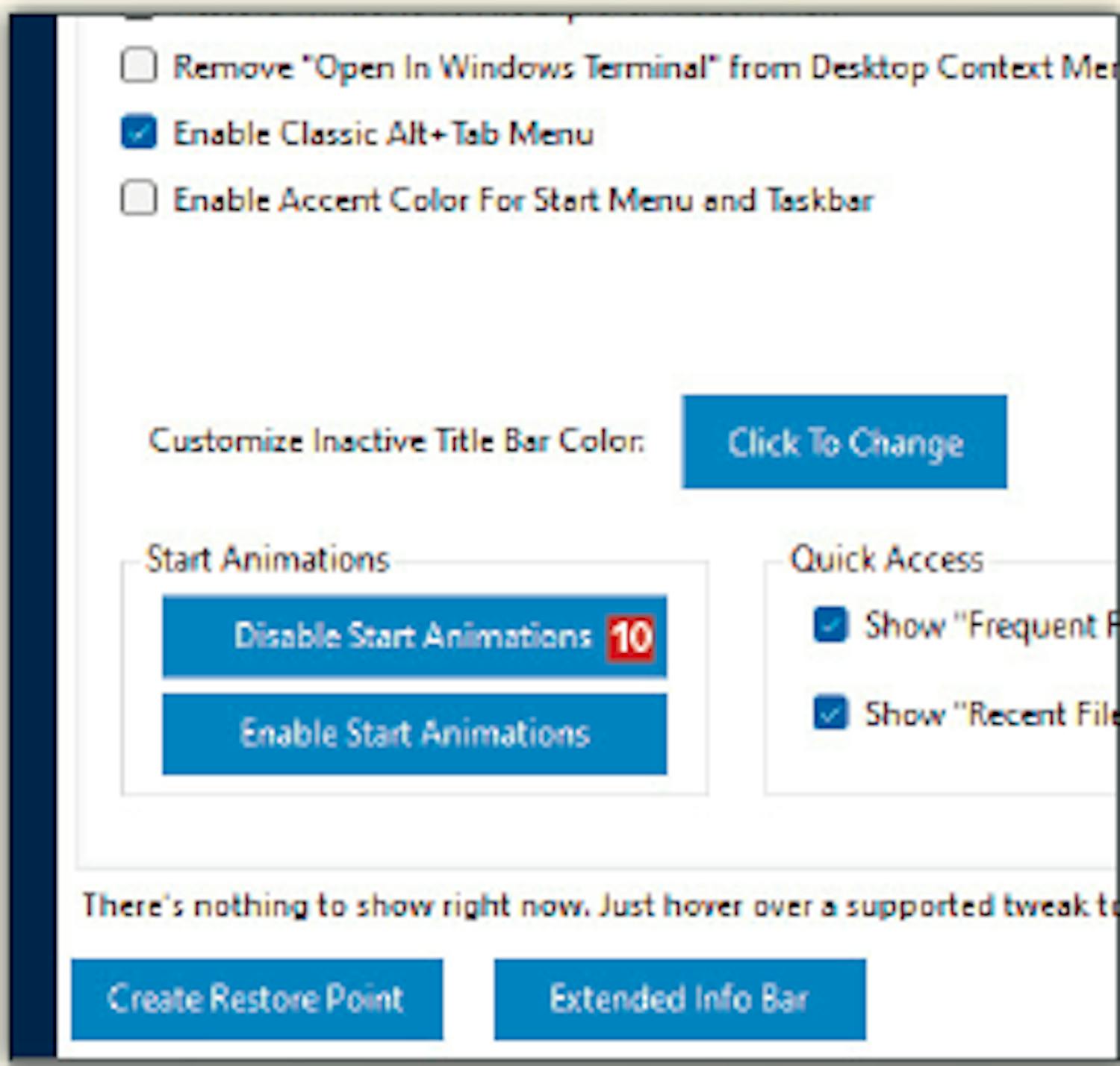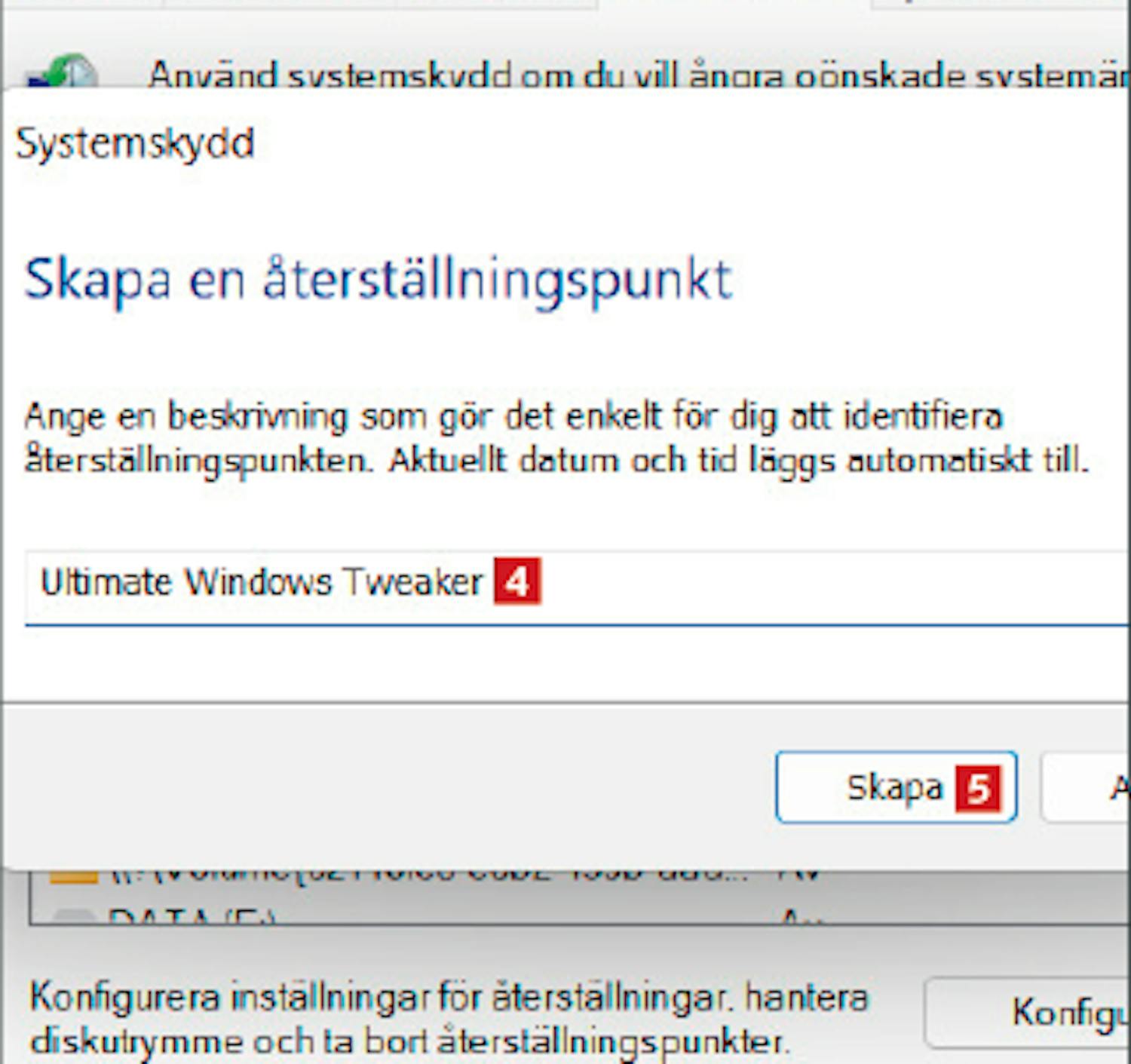 Vi rekommenderar att du skapar en systemåterställningspunkt i Windows när Ultimate Windows Tweaker frågar dig om det. På så sätt kan du gå tillbaka om du ångrar en inställning i programmet.
