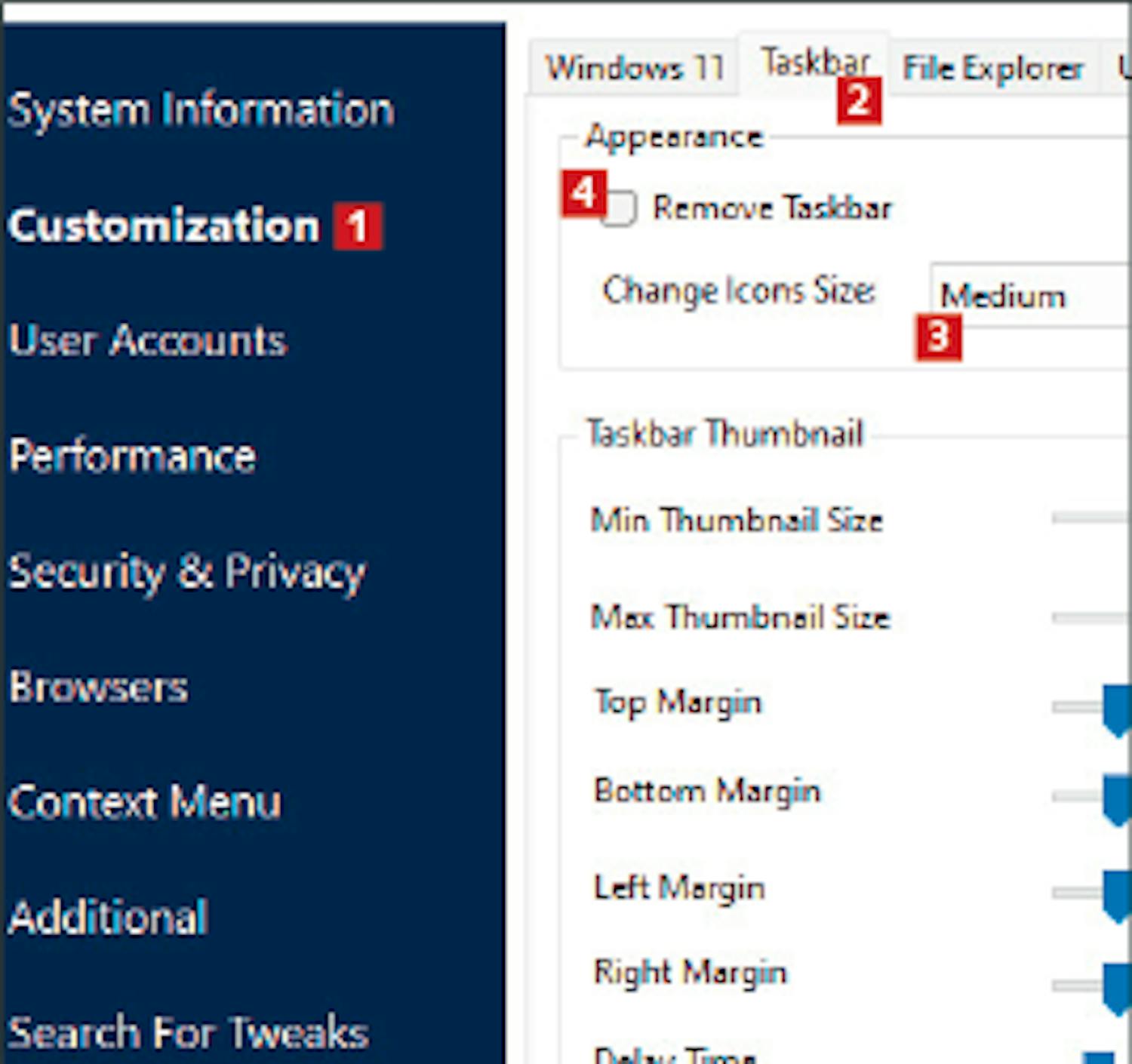 Ultimate Windows Tweaker ger bland annat tillgång till oöverträffade inställningar för Aktivitetsfältet i Windows, där du både kan ändra ikonernas storlek och bestämma om Start-menyn ska ligga till vänster, mitt i eller till höger i Aktivitetsfältet. Du kan också lägga till praktiska genvägar på musens högerklicksmeny