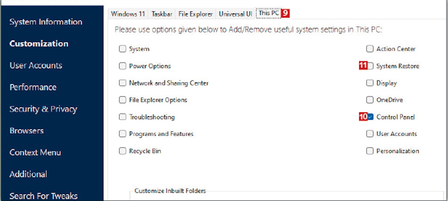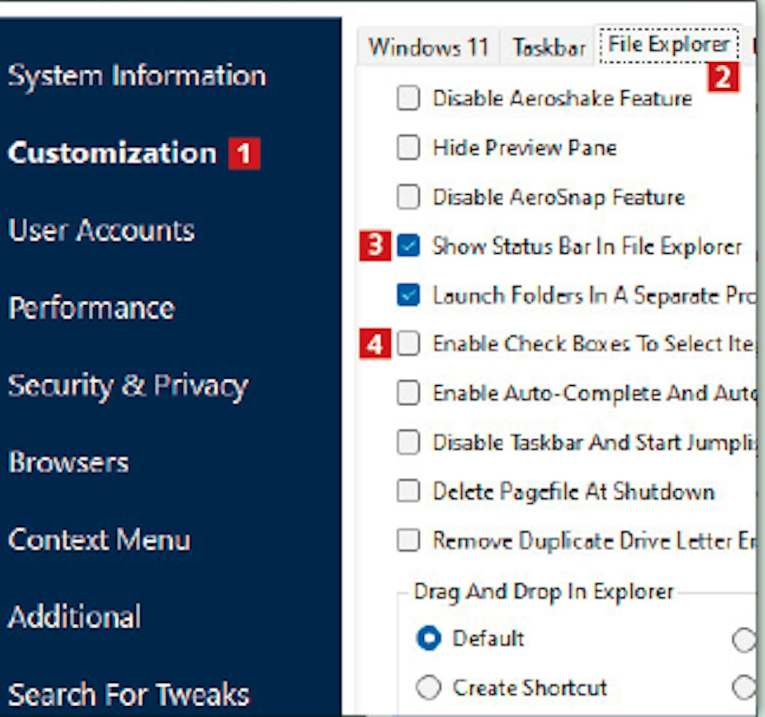 Med Ultimate Windows Tweaker kan du enkelt bestämma exakt vad som ska visas när du öppnar Utforskaren och vilka detaljer programmet ska visa om dina filer. Det är också praktiskt att skapa genvägar till viktiga funktioner på datorn, som sedan visas när du startar Utforskaren.