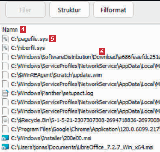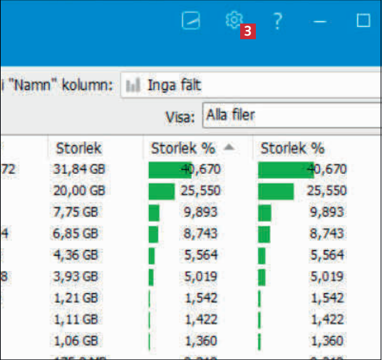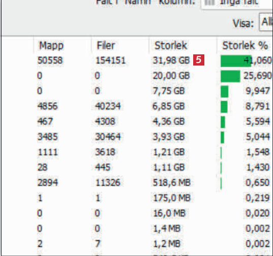 Istället för att visa de största mapparna i programmet kan du även få en komplett lista över filerna på din hårddisk sorterade efter storlek. På så sätt kan du ännu snabbare komma igång med att ta bort onödiga filer.