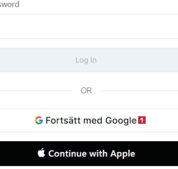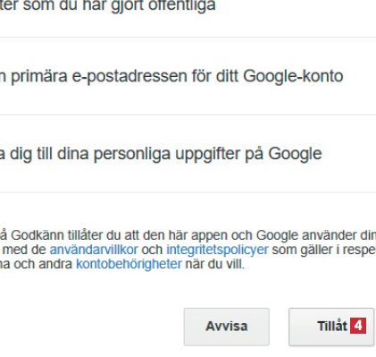 Vi väljer att skapa en användare med vårt Google-konto och rekommenderar att du gör detsamma. Klicka på Fortsätt med Google 1.