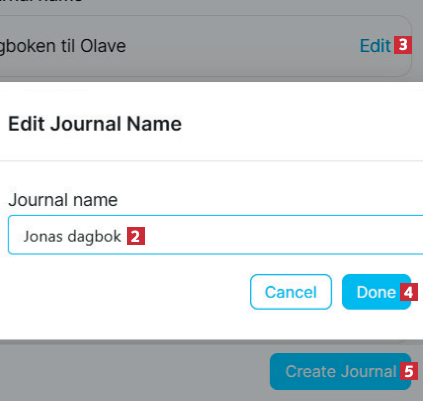 Ge dagboken ett namn 2 genom att klicka på Edit 3. Klicka på Done 4 följt av Create Journal 5. Nu är dagboken skapad.
