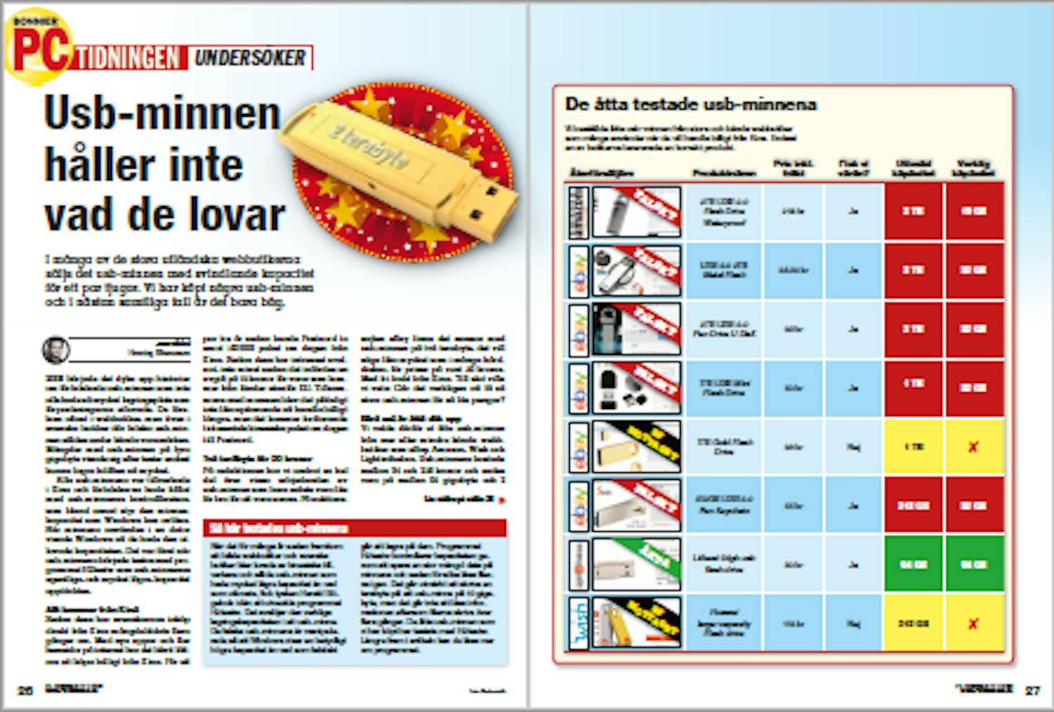 Om ett usb-minne inte har den kapacitet som det är märkt med är risken stor att filer som sparas på det inte kommer att gå att läsa. Ofta upptäcks inte detta förrän det är för sent. Du kan själv testa dina usb-minnen med det program som vi har använt i detta test. OBS! Tänk på att alla filer på usb-minnena raderas under testerna.