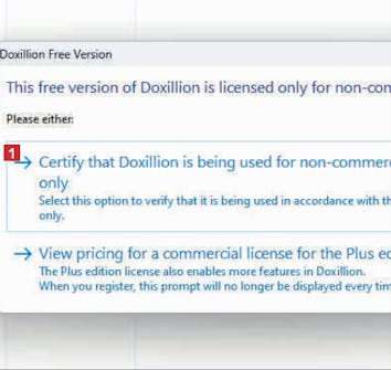 Hämta Doxillion och installera programmet. När du startar det väljer du Certify that Docillion… 1 för att bekräfta att du tänker använda programmet som privatperson.