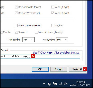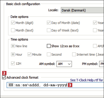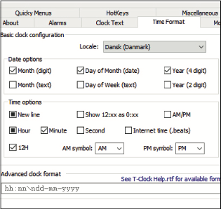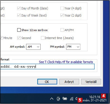 Med T-Clock kan du enkelt ändra vilket tidsformat din klocka ska ha. Det ger dig en mängd möjligheter att bestämma vad som visas. Här kan du till exempel se hur klockan kan visa både veckodag och sekunder, och hur du skiljer siffrorna åt på ett annat sätt.