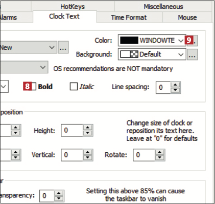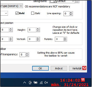 En av de mest användbara funktionerna i T-Clock hittar du under fliken Clock Text. Här kan du ändra teckensnitt, göra texten större, lägga till bakgrundsfärg, ändra teckenfärgen, välja fet stil och mycket mer. Här visar vi hur