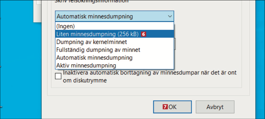 Upplever du fel i Windows utan att det finns några användbara beskrivningar i WhoCrashed av problemen kan det bero på att Windows inte sparar tillräckligt mycket information. Det kan du ändra på i inställningarna för Windows: