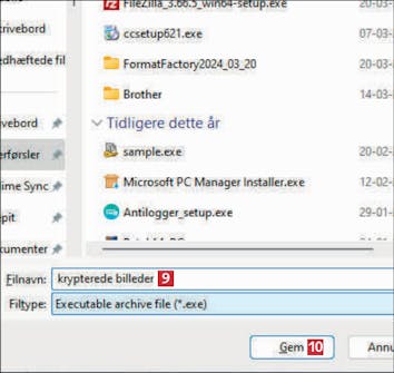 Välj den mapp där du vill spara det krypterade arkivet, ge filen ett namn 9 och klicka på Spara 10.