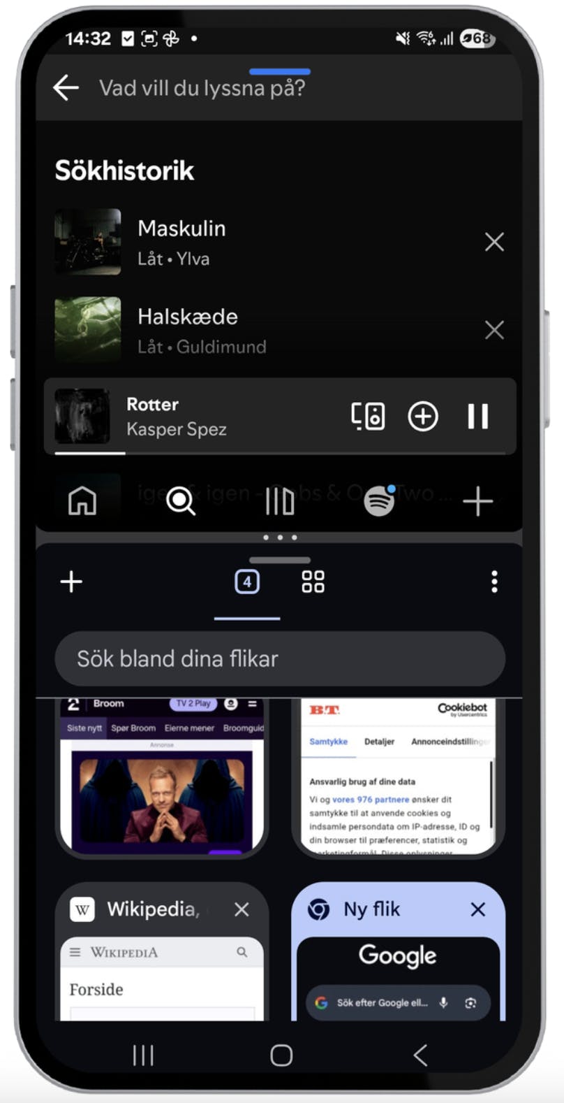 Android låter dig köra två appar samtidigt med delad skärm. Det betyder att du kan ha din mejl öppnad på ena halvan av skärmen medan du har en webbplats eller dina foton öppnade på den andra halvan.