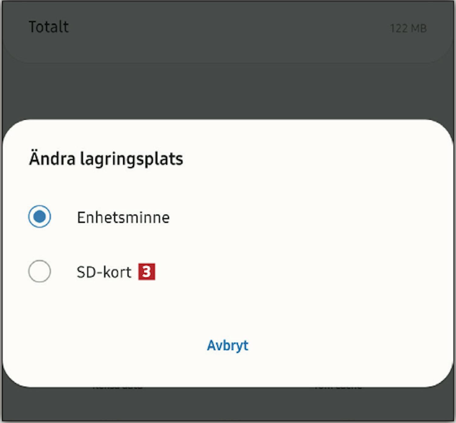 Under Lagring trycker du på Ändra