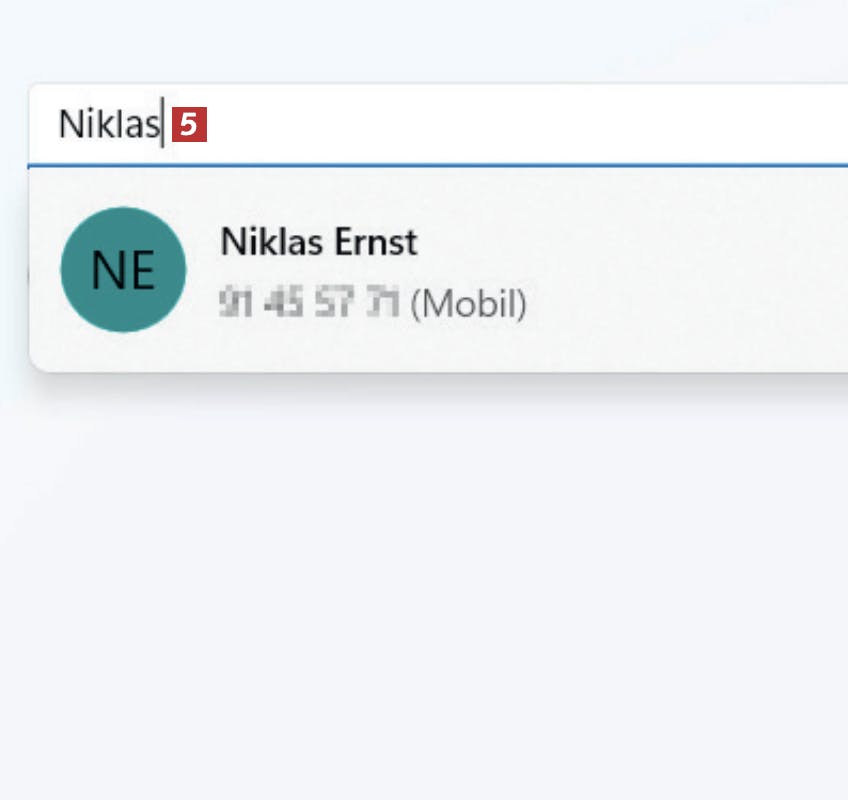 Sök efter en kontakt 3 som du vill lägga till i grupp-sms:et. Klicka på personen 4 i sökresultatet.