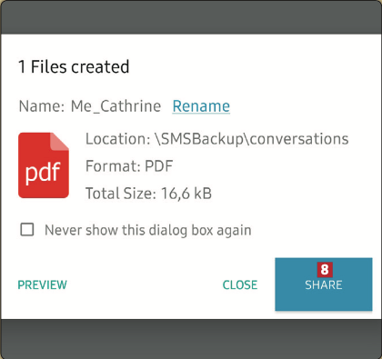 och väljer Share 8. Nu kan filen